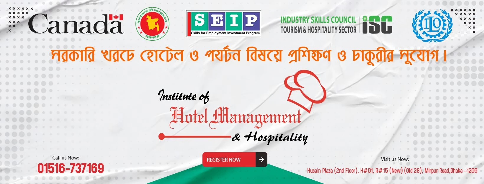 The Institute of Hotel Management and Hospitality (IHMH) was established in 2004 as the first private sector training Institute in Bangladesh, affiliated with Bangladesh Technical Education Board (BTEB) since December 2008 and National Skills Development Authority (NSDA) since April 2023 as a Registered Training Organization (RTO).